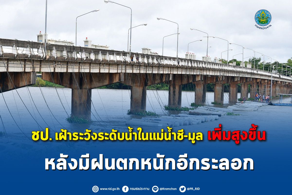 อิทธิพลของร่องมรสุมพาดผ่านภาคตะวันออกเฉียงเหนือตอนล่าง ทำให้มีฝนตกหนักและตกชุกกระจายในพื้นที่ภาคตะวันออกเฉียงเหนือตอนล่าง ส่งผลให้มีน้ำไหลลงสู่แม่น้ำชีและแม่น้ำมูลเพิ่มมากขึ้น ศูนย์บริหารจัดการอุทกภัยลุ่มน้ำชี-มูล (ส่วนหน้า) สั่งจับตาเฝ้าระวังระดับน้ำที่จะสูงขึ้น ตามข้อสั่งการของนายประพิศ จันทร์มา อธิบดีกรมชลประทาน
