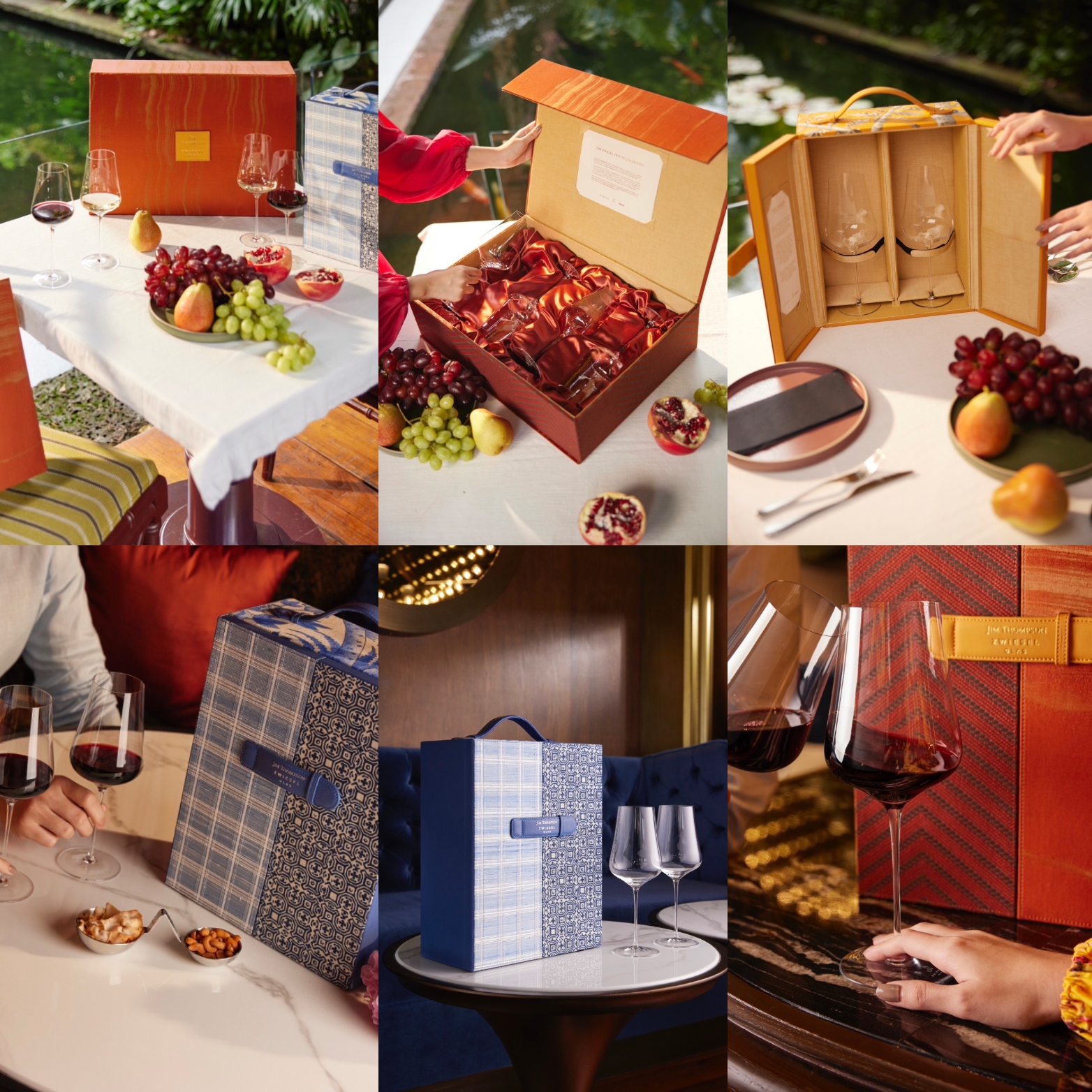 JIM THOMPSON x ZWIESEL GLAS Festive Collection by ITALASIA นับเป็นผลงานคอลแลบที่ผสานจุดแข็งของทั้งสองแบรนด์ได้อย่างลงตัว นำผ้าไหมชื่อก้องของจิม ทอมป์สัน มาตกแต่งกล่องบรรจุแก้วไวน์ของแบรนด์ Zwiesel Glas แก้วไวน์พรีเมียมสัญชาติเยอรมนี ที่เชี่ยวชาญด้านผลิตภัณฑ์แก้วไวน์กว่า 150 ปี ซึ่งวงการโรงแรมและร้านอาหารระดับหรูต่างไว้ใจด้วยคุณภาพมาตรฐานเหนือชั้น ทำให้คอลเลกชันนี้เป็นดั่งงานคราฟต์ระดับมาสเตอร์พีซที่มอบความคลาสสิกสุดล้ำค่า พร้อมยกระดับการสังสรรค์ในทุกโอกาส