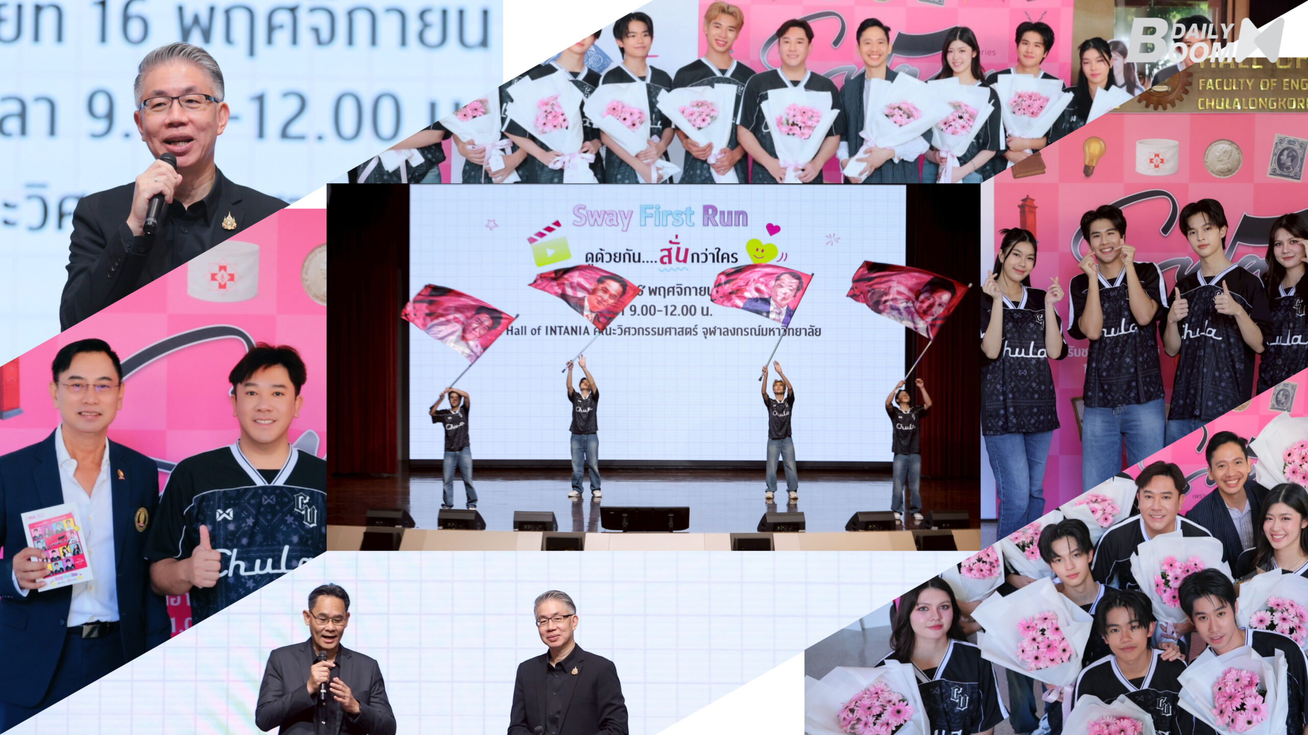 กรุงเทพฯ — สมาคมนิสิตเก่าจุฬาลงกรณ์มหาวิทยาลัยในพระบรมราชูปถัมภ์ (สนจ.) โดย ดร.ณัฐพล รังสิตพล นายกสมาคม เปิด Hall of INTANIA คณะวิศวกรรมศาสตร์ จุฬาลงกรณ์มหาวิทยาลัย จัดงาน “SWAY FIRST RUN ดูด้วยกัน สั่นกว่าใคร” ให้แฟน ๆ กว่า 400 คน ได้ชมซีรีส์แนวใหม่ “SWAY THE SERIES เพราะเธอใช่ไหม…ที่ทำให้ใจฉันสั่น” EP. แรกด้วยกัน โดยเหล่านักแสดงหน้าใหม่ยังได้เสิร์ฟโชว์สุดพิเศษทั้งการแสดงธง Chula Colorguard ใน “เพลงขวัญใจจุฬา” เวอร์ชั่นใหม่ เปิดตัวเพลงประกอบซีรีส์ “เธออีกแล้ว” โดย เคที่ แม็คเอ็นที พร้อมชวนเป็นส่วนหนึ่งของกิจกรรมปิยมหาราชานุสรณ์ ๒๕๖๘ : จุฬาลงกรณ์ แรงบันดาลใจของแผ่นดิน ร่วมบริจาคสมทบทุนจุฬาสงเคราะห์และทุนอาหารกลางวันและสนับสนุนกิจกรรมเพื่อสังคมของ สนจ. ต่อไป