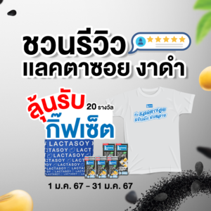 “แลคตาซอย” ประเดิมต้นปีด้วยกิจกรรมสนุก ๆ เพียงรีวิวความอร่อยของแลคตาซอยงาดำ ว่าหอมงาดำเข้ม ดื่มแล้วฟินขนาดไหน ลุ้นรับรางวัล Giftset จำนวน 20 รางวัล (ในเซตประกอบด้วย แลคตาซอยงาดำ 250 ml. 2 กล่อง + 125 ml. 4 กล่อง + เสื้อ 1 ตัว) เริ่มจากเเชร์โพสต์กิจกรรมนี้เป็นสาธารณะ รีวิวความอร่อยของเเลคตาซอยงาดำในเเบบคุณ ติด #แลคตาซอย #Lactasoy #แลคตาซอยงาดำ แคปโพสต์ยืนยันการร่วมกิจกรรมแล้วรอลุ้นรางวัล ระยะเวลาตั้งแต่วันนี้ถึง 31 ม.ค. 67 ประกาศผลวันที่ 5 ก.พ. 67 ทาง FB: Lactasoyclub