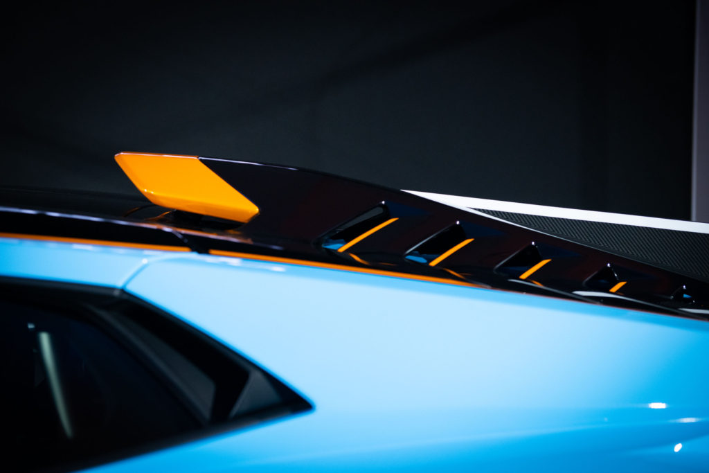 สปอยเลอร์หลังของ Huracán STO สามารถปรับตั้งได้ 3 ระดับ เพื่อให้สมดุลตามแต่ละรูปแบบของสนามได้อย่างลงตัว