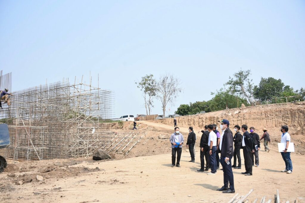 โดยจุดแรก อธิบดีกรมชลประทาน และคณะ ได้เดินทางไปติดตามความก้าวหน้าโครงการก่อสร้างประตูระบายน้ำเหมืองจี้ บ้านฝั่งหมิ่น หมู่ที่ 7 ตำบลเหมืองจี้ อำเภอเมือง จังหวัดลำพูน มีลักษณะเป็นประตูระบายน้ำ จำนวน 5 ช่อง พร้อมอาคารป้องกันตลิ่งและระบบส่งน้ำ หากดำเนินการแล้วเสร็จ จะทำให้มีน้ำต้นทุนส่งน้ำไปช่วยเหลือพื้นที่การเกษตรได้ประมาณ 6,900 ไร่ เป็นแหล่งน้ำเพื่ออุปโภคบริโภค และช่วยเพิ่มประสิทธิภาพการระบายน้ำในลำน้ำทาบรรเทาปัญหาน้ำท่วมในพื้นที่ได้อย่างมีประสิทธิภาพ ส่งผลให้ประชาชนในพื้นที่มีผลผลิตและรายได้ต่อปีเพิ่มขึ้น ทำให้คุณภาพชีวิตดีขึ้นตามไปด้วย ปัจจุบันมีความคืบหน้าไปแล้วกว่า 30% โดยประตูระบายน้ำจะแล้วเสร็จในปี 2565 ส่วนระบบส่งน้ำจะแล้วเสร็จในปี 2566