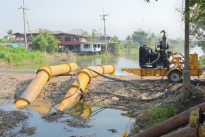 กรมชลประทาน ยังคงเร่งดำเนินการแก้ไขปัญหาความเดือดร้อนของพี่น้องประชาชนที่ได้รับผลกระทบอย่างต่อเนื่อง โดยมีการระดมติดตั้งเครื่องสูบน้ำ จำนวน 26 เครื่อง พร้อมกันนี้ยังได้ส่งเรือนวัตกรรมกำจัดวัชพืช จำนวน 7 ลำ เข้าไปกำจัดวัชพืชเพื่อเพิ่มประสิทธิภาพการระบายน้ำและรักษาคุณภาพน้ำไม่ให้เน่าเสีย ตลอดจนส่งน้ำอุปโภค-บริโภค ช่วยเหลือประชาชน 2,320 ครัวเรือน ในเขตพื้นที่ 9 หมู่บ้าน รวมปริมาณน้ำทั้งสิ้น 990,000 ลิตร