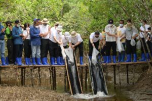 นอกจากการร่วมกันปลูกป่าชายเลนแล้ว กิจกรรมครั้งนี้ ยังมีการปล่อยปลาและปล่อยปูดำ เป็นการช่วยรักษาสมดุลธรรมชาติและเพิ่มความหลากหลายทางชีวภาพในพื้นที่ รวมถึงเยี่ยมชมความสำเร็จของวิสาหกิจชุมชนท่องเที่ยวบ้านธรรมชาติล่าง จ.ตราด ได้แก่ การทำผลิตภัณฑ์ผ้าสามป่า น้ำดื่มชุมชน ปุ๋ยนาโน ศูนย์การเรียนรู้การจัดการขยะ และวิสาหกิจชุมชนท่องเที่ยววิถีชุมชนตำบลปากน้ำประแส จ.ระยอง มีผลิตภัณฑ์ขึ้นชื่อ อาทิ กะปิ น้ำปลา ชาใบขลู่ เป็นต้น ซึ่ง ซีพีเอฟให้การสนับสนุน เพื่อช่วยขับเคลื่อนเศรษฐกิจ สังคม และสิ่งแวดล้อมในพื้นที่