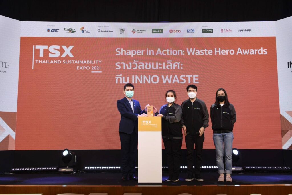 โครงการ Shaper in Action : Waste Hero Awards จัดเป็นครั้งแรกของประเทศไทย ในงาน “Thailand Sustainability Expo 2021” (TSX) ซึ่งจัดขึ้นเมื่อเร็วๆนี้ โดยซีพีเอฟ ร่วมเป็นกรรมการตัดสิน มี นายประสิทธิ์ บุญดวงประเสริฐ ประธานคณะผู้บริหาร ซีพีเอฟ เป็นผู้มอบรางวัลให้กับผู้ชนะเลิศและรองชนะเลิศ ที่คิดค้นนวัตกรรมและพัฒนาธุรกิจรักษ์โลก ช่วยจัดการขยะอาหาร สร้างมูลค่าเพิ่ม ผ่านการใช้ทรัพยากรอย่างสร้างสรรค์ และมีส่วนร่วมผลักดันสังคมสู่การลดผลกระทบทางสิ่งแวดล้อมและสังคมอย่างยั่งยืน ภายใต้แนวคิดเศรษฐกิจหมุนเวียน (Circular Economy) เพื่อส่งเสริมผู้ประกอบการ SMEs ให้มีการคิดค้นนวัตกรรมเพื่อจัดการและเพิ่มมูลค่าขยะอาหาร (Food Waste management and Value-added)