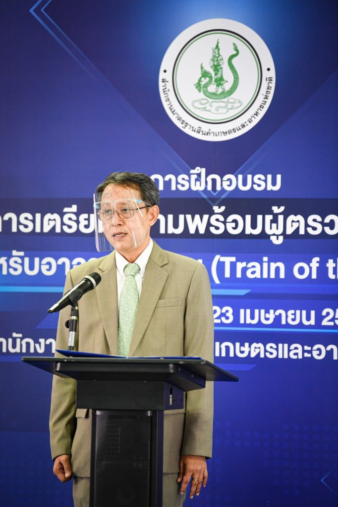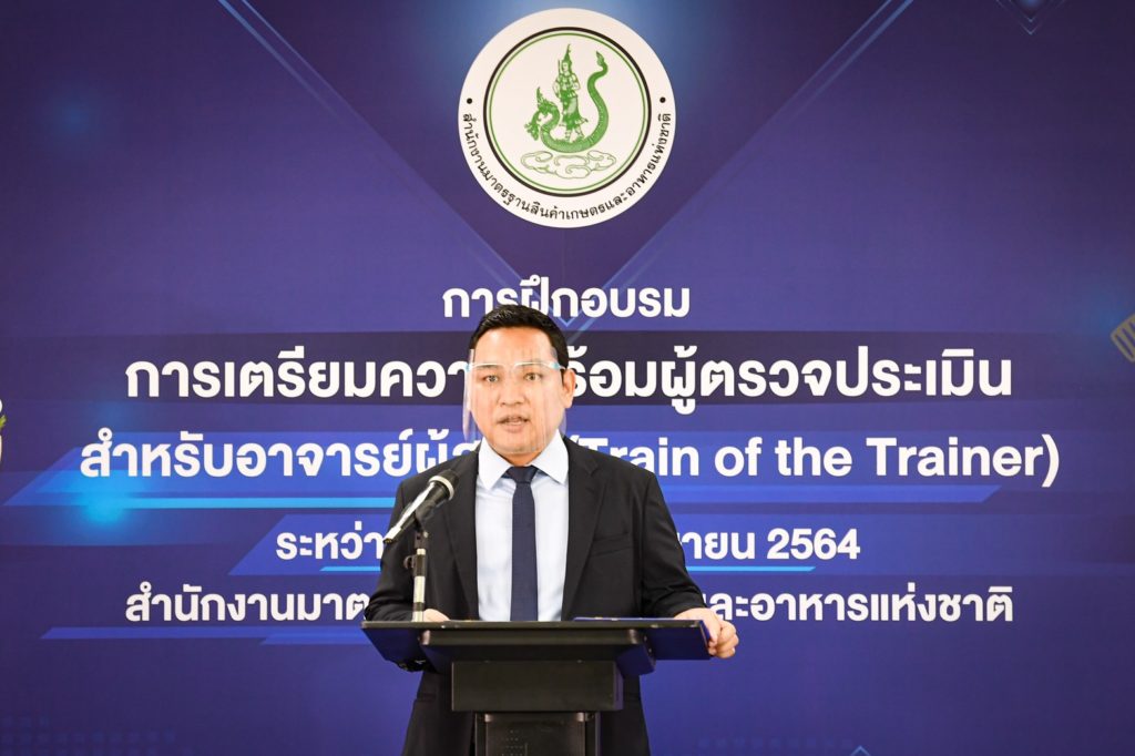 นายพิศาล พงศาพิชณ์ เลขาธิการสำนักงานมาตรฐานสินค้าเกษตรและอาหารแห่งชาติ (มกอช.) เป็นประธานเปิดการฝึกอบรมเชิงปฏิบัติการ การเตรียมความพร้อมผู้ตรวจประเมินสำหรับอาจารย์ผู้สอน (Train Of The Trainer) ครั้งที่ 1 ในรูปแบบออนไลน์ (Online) เพื่อสร้างองค์ความรู้และเพิ่มจำนวนบุคลากรด้านการตรวจประเมินและรับรองตามมาตรฐานสินค้าเกษตร การปฏิบัติทางการเกษตรที่ดี (Good Agriculture Practices : GAP) และมาตรฐานเกษตรอินทรีย์ (Organics) สำหรับอาจารย์ผู้สอน (Train Of the Trainer) ให้มีความรู้ ความเข้าใจ สามารถนำความรู้ที่ได้ไปใช้เป็นแนวทางในการถ่ายทอดและสื่อสารให้กับนักศึกษาได้ต่อไป โดยมี อาจารย์จากมหาวิทยาลัยเกษตรศาสตร์ มหาวิทยาลัยขอนแก่น มหาวิทยาลัยเชียงใหม่ มหาวิทยาลัยธรรมศาสตร์ มหาวิทยาลัยนเรศวร มหาวิทยาลัยแม่โจ้ มหาวิทยาลัยสงขลานครินทร์ มหาวิทยาลัยมหาสารคาม และวิทยาลัยเกษตรและเทคโนโลยี จำนวน 70 ราย เข้าร่วมอบรม ณ ห้องประชุม 511 อาคาร 5 มกอช.