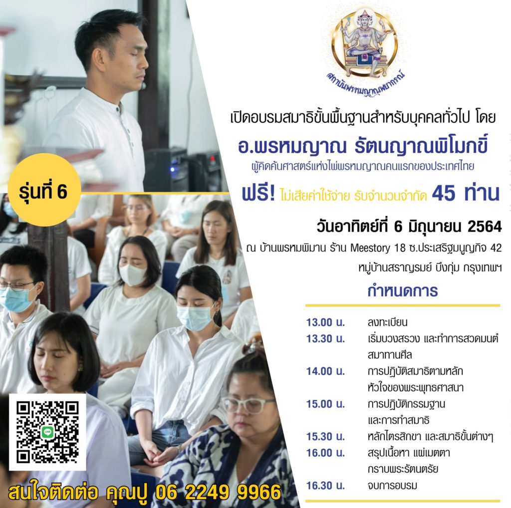 ท่านใดที่สนใจเข้าร่วมอบรมสมาธิ รุ่นที่6 ติดต่อได้ที่ คุณปู สุธาสินี ลมัยจันทร์ 06 2249 9966” ฟรี!!! รับจำนวนจำกัด 45 ท่านต่อรุ่น