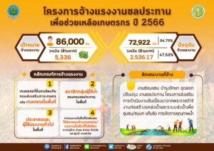 ปัจจุบันมีการจ้างแรงงานทั่วประเทศไปแล้ว 72,922 คน หรือประมาณ 85% ของแผนฯ โดยจังหวัดที่มีผลการจ้างแรงงานมากที่สุด 3 ลำดับ ได้แก่ จังหวัดอุบลราชธานี 6,024 คน จังหวัดสกลนคร 3,354 คน และจังหวัดนครราชสีมา 3,330 คน