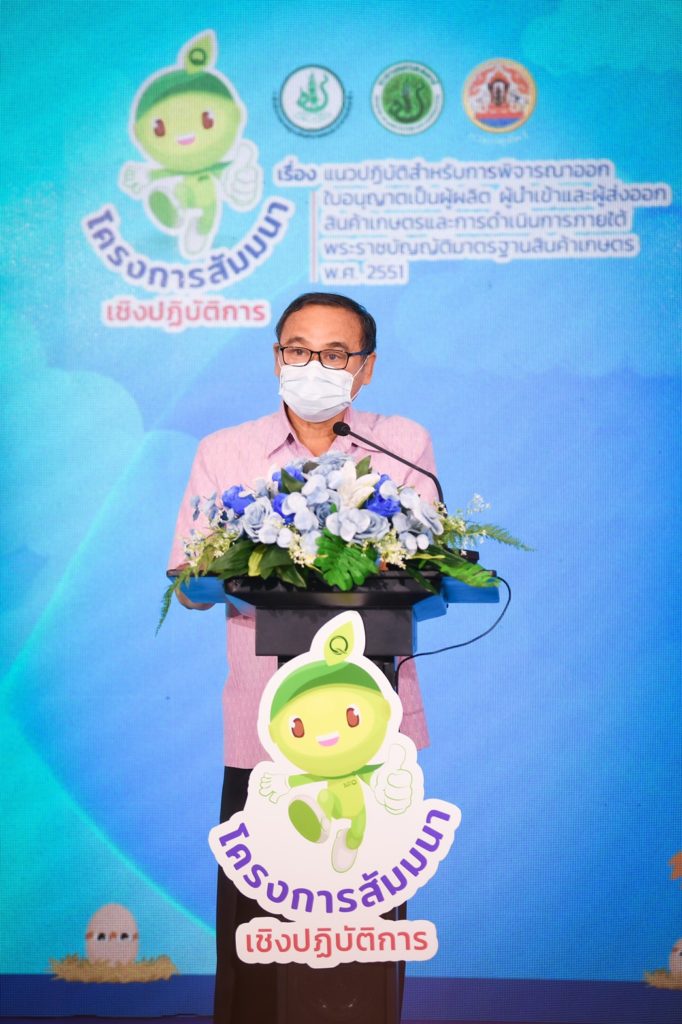 ทั้งนี้ เพื่อให้การกำกับดูแลสินค้าเกษตรดังกล่าวมีความเบ็ดเสร็จภายในหน่วยงาน และอำนวยความสะดวก ในการให้บริการ มกอช. จึงได้มีการมอบภารกิจให้หน่วยงานของรัฐที่มีความสามารถดำเนินการออกใบอนุญาต เป็นผู้ผลิต ผู้นำเข้า และผู้ส่งออกสินค้าเกษตรตามมาตรฐานบังคับแก่ผู้ประกอบการและเกษตรกร โดยมีกรมปศุสัตว์เป็นหน่วยงานแรกที่มีความพร้อมในการดำเนินการดังกล่าว ดังนั้น เพื่อให้เจ้าหน้าที่ของหน่วยงานรัฐที่ได้รับมอบหมายภารกิจสามารถปฏิบัติงานได้อย่างถูกต้องเรียบร้อยเป็นไปในทิศทางเดียวกัน มกอช. จึงได้จัดสัมมนาเชิงปฏิบัติการ เรื่อง แนวปฏิบัติสำหรับการพิจารณาออกใบอนุญาตเป็นผู้ผลิต ผู้นำเข้า และผู้ส่งออกสินค้าเกษตร และการดำเนินการภายใต้พระราชบัญญัติมาตรฐานสินค้าเกษตร พ.ศ. ๒๕๕๑ ขึ้น โดยมีวัตถุประสงค์เพื่อเสริมสร้างความรู้ความเข้าใจในการพิจารณาออกใบอนุญาตเป็นผู้ผลิต ผู้นำเข้า และผู้ส่งออกสินค้าเกษตรตามมาตรฐานบังคับผ่านระบบอิเล็กทรอนิกส์ (TAS-License) และเสริมสร้างความรู้ความเข้าใจแนวปฏิบัติและวิธีการดำเนินงานตามมาตรฐานบังคับการดำเนินงานภายใต้พระราชบัญญัติมาตรฐานสินค้าเกษตร พ.ศ. ๒๕๕๑ ตลอดจนแนะนำแลกเปลี่ยนประสบการณ์ ปัญหาและอุปสรรคในการดำเนินงานตามมาตรฐานบังคับ โดยจัดการสัมมนาในรูปแบบการบรรยายทางระบบออนไลน์ จำนวน ๓ รุ่น ระหว่างวันที่ 25-28 พฤษภาคม 2564