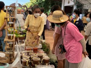 ชม ช้อป สินค้าเกษตรปลอดภัย ผัก ผลไม้ สดใหม่จากสวน ผลิตภัณฑ์แปรรูปคุณภาพ จากเครือข่ายเกษตรกรและภาคีความร่วมมือ ที่นำมาจำหน่ายให้ผู้เข้าร่วมงานได้เลือกซื้อกลับบ้านในราคาย่อมเยา