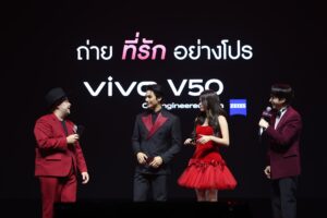 กรุงเทพฯ 26 กุมภาพันธ์ – ส่งท้ายเดือนแห่งความรัก! vivo แบรนด์สมาร์ตโฟนชั้นนำระดับโลก พร้อมพา vivo fans ชาวไทยมาสัมผัสเสน่ห์อันน่าหลงใหลของการถ่ายภาพพอร์ตเทรต ผ่านการเปิดตัวสมาร์ตโฟนรุ่นล่าสุดจากตระกูล V Series อย่าง vivo V50 ภายใต้คอนเซปต์ ‘ถ่ายที่รักอย่างโปร’ พร้อมยกขบวนเหล่าคนดังในวงการบันเทิงมาร่วมสร้างสีสันและถ่ายทอดโมเมนต์แห่งความรักด้วยนวัตกรรมพอร์ตเทรตจาก vivo และ ZEISS นำโดย vivo Friends อาโป – ณัฐวิญญ์ วัฒนกิติพัฒน์ นักแสดง-นายแบบหนุ่มหน้าคมที่ใครเห็นก็ต้องตกหลุมรัก เบคกี้ – รีเบคก้า แพทรีเซีย อาร์มสตรอง นักร้อง-นักแสดงสาวสวยที่เปล่งประกายด้วยเอเนอร์จีอันล้นเหลือ และ โอ๊ต – ปราโมทย์ ปาทาน ศิลปินหนุ่มอารมณ์ดี ฝีมือการถ่ายภาพไม่ธรรมดา เสริมทัพด้วยสองนักแสดงหนุ่ม เก่ง – หฤษฎ์ บัวย้อย และ น้ำปิง – นภัสกร ปิงเมือง ที่มาร่วมเติมเต็มความสดใสให้กับงานเปิดตัวในครั้งนี้