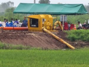 ในส่วนของกรมชลประทานได้ติดตั้งเครื่องสูบน้ำรวม 9 เครื่อง ใน 3 จุดสำคัญ ได้แก่ ต.ธานี ต.บ้านกล้วย และ ต.ปากแคว เพื่อเร่งระบายน้ำออกจากเขตเมืองให้เร็วที่สุด