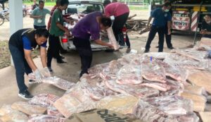 นับตั้งแต่เกิดการระบาดของ “โรค ASF” ในประเทศ ทำให้กำลังการผลิตหมูของไทยเสียหายไปกว่า 50% ปริมาณหมูขุนหายไปกว่า 10 ล้านตัว ประกอบกับผู้เลี้ยงรายกลางและรายเล็กไม่กล้ากลับมาเลี้ยงใหม่ เพราะมีความเสี่ยงและต้นทุนการผลิตสูง ส่งผลให้ราคาเนื้อหมูทั่วประเทศปรับเพิ่มขึ้น แต่ในช่วงที่ผ่านมา ราคาเนื้อหมูชำแหละลดต่ำลงอย่างไม่มีสาเหตุ ทั้งที่การเลี้ยงหมูยังไม่ฟื้นตัวจากปัญหาโรค ASF จนผู้ประกอบการและผู้เลี้ยงต้องหาสาเหตุ และพบว่าเกิดจากกระบวนการลักลอบนำเข้าหมูชำแหละและเครื่องในจากต่างประเทศ ที่แพร่กระจายวางไปในตลาดต่างๆ อย่างรวดเร็ว มีเนื้อหมูปริมาณมากออกมาขาย และเป็นขบวนการใหญ่มากแต่จับได้เพียงเล็กน้อย โดยขายเนื้อหมูในราคาต่ำกิโลกรัมละ 135-145 บาทเท่านั้น