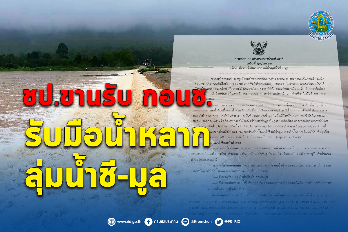 ชป.ขานรับ กอนช. รับมือน้ำหลากลุ่มน้ำชี-มูล