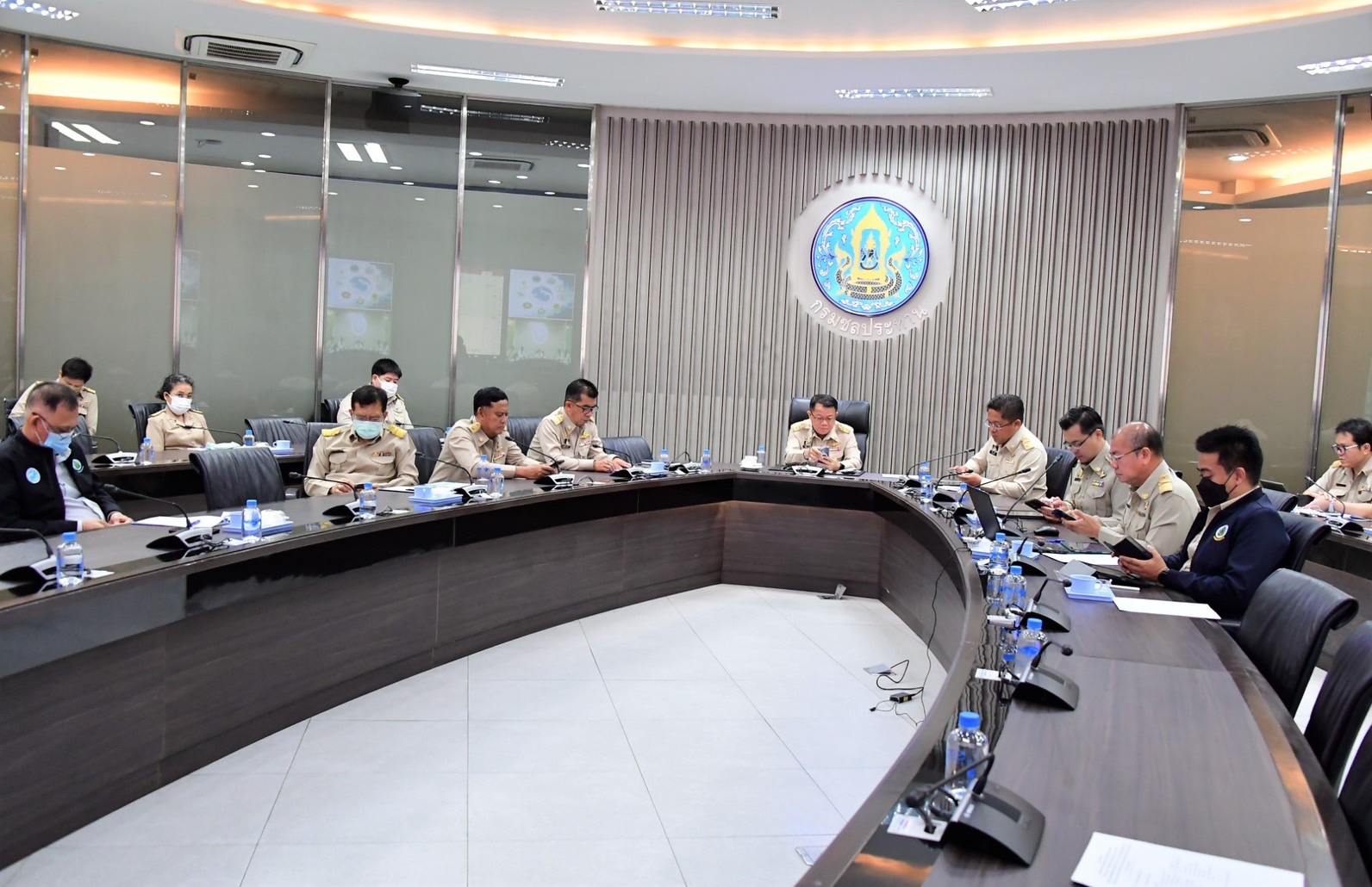 วันนี้ (27 มีนาคม 2566) ที่ศูนย์ปฏิบัติการน้ำอัจฉริยะ (SWOC) กรมชลประทาน ถนนสามเสน กรุงเทพฯ ดร.ทวีศักดิ์ ธนเดโชพล รองอธิบดีกรมชลประทาน เป็นประธานการประชุมคณะอนุกรรมการติดตามและวิเคราะห์แนวโน้มสถานการณ์น้ำ ครั้งที่ 10/2566 ผ่านทางระบบ Video Conference ไปยังสำนักงานชลประทานที่ 1-17 และหน่วยงานที่เกี่ยวข้อง อาทิ กรมอุตุนิยมวิทยา สถาบันสารสนเทศทรัพยากรน้ำ กรมทรัพยากรน้ำ กรมป้องกันและบรรเทาสาธารณภัย สำนักการระบายน้ำกรุงเทพมหานคร การไฟฟ้าฝ่ายผลิตแห่งประเทศไทย (กฟผ.) เพื่อติดตามและวิเคราะห์สถานการณ์น้ำในอ่างเก็บน้ำ แหล่งน้ำ และแม่น้ำสายหลักต่าง ๆ สำหรับเป็นข้อมูลในการบริหารจัดการน้ำให้สอดคล้องและเหมาะสมในแต่ละพื้นที่