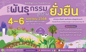 ขอเชิญร่วมเป็นส่วนหนึ่งในการดำรงรักษาไว้ซึ่งพันธุกรรมอันเป็นมรดกสำคัญของชาติไทยในงาน “จากพันธุกรรม สู่ความยั่งยืน” ระหว่างวันที่ 4 – 6 เมษายน 2568 ตั้งแต่เวลา เวลา 08.00 – 17.00 น.
