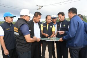 จากนั้น ได้เดินทางไปยังพนังกั้นน้ำแม่น้ำโก-ลก เพื่อติดตามสถานการณ์น้ำ และระดับน้ำในแม่น้ำโก-ลก รวมทั้งแผนดำเนินงานโครงการปรับปรุงพนังกั้นน้ำแม่น้ำโก-ลก ที่จะช่วยเพิ่มความมั่นคงแข็งแรงของระบบฐานราก และป้องกันไม่ให้น้ำเอ่อล้นตลิ่งเข้าท่วมในพื้นที่ริมฝั่งแม่น้ำโก-ลก และพื้นที่ชุมชน