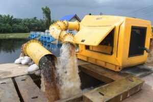 ในการนี้ อธิบดีกรมชลประทาน และคณะ ได้เดินทางไปติดตามการระบายน้ำ บริเวณท่อระบายน้ำปลายคลองลาน ตำบลพร่อน อำเภอตากใบ ซึ่งเป็นจุดที่สามารถเร่งการระบายน้ำได้เร็วขึ้น สำนักงานชลประทานที่ 17 ได้ติดตั้งเครื่องสูบน้ำเพื่อเร่งสูบน้ำลงทางท่อลอด ก่อนระบายลงสู่คลองปูยู แม่น้ำโก-ลก และออกสู่ทะเล ตามลำดับ