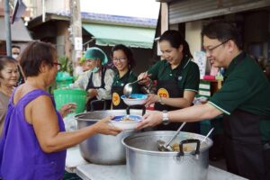 สำหรับกิจกรรมในครั้งนี้ นายทวิช ทัฬหะกาญจนากุล ผู้อำนวยการโลจิสติกส์และศูนย์กระจายสินค้า บริษัท ซีพีเอฟ โกลบอล ฟู้ด โซลูชั่น จำกัด (มหาชน) หรือ CPFGS เป็นหนึ่งในผู้นำด้านการจัดจำหน่ายผลิตภัณฑ์เนื้อสัตว์และอาหาร กิจการร้านอาหารและธุรกิจขนมสัตว์เลี้ยง ซึ่งเป็นบริษัทย่อยของซีพีเอฟ นำวัตถุดิบที่มาจากการบริหารจัดการอาหารส่วนเกิน ซึ่งเป็นวัตถุดิบที่มีคุณภาพ สด สะอาดปลอดภัย สู่การปรุงเป็นมื้ออร่อยตามหลักโภชนาการ อาทิ ขาเป็ด เนื้อเป็ดหมักสวรรค์พร้อมปรุง เนื้อเลาะโครงอก และคั่วกลิ้งไก่ นำมาปรุงอาหารเป็นเมนูต่างๆ เช่น ขาเป็ดพะโล้ ผัดกะเพรา เพื่อแจกจ่ายให้กับผู้ที่อาศัยในชุมชนคลองลัดภาชี และนำวัตถุดิบแจกจ่ายให้ชุมชนใกล้เคียง ได้แก่ ชุมชนคลองตาแป้น ชุมชนซอยเพชรเกษม 40 ชุมชนสิรินทร์และเพื่อน ชุมชนหมู่ 5 บางแวก ชุมชนเพชรเกษม 46 ชุมชนวัดโคนอน โดยมีจิตอาสาซีพีเอฟ เจ้าหน้าที่มูลนิธิ SOS สาขาประเทศไทย และผู้บริหาร บริษัท จีอีพีพี สะอาด จำกัด (GEPP)