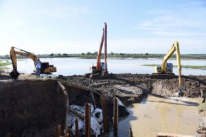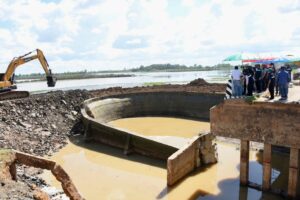 วันนี้ (28 ส.ค.65) นายประพิศ จันทร์มา อธิบดีกรมชลประทาน พร้อมด้วย นายเอนก ก้านสังวอน ผู้อำนวยการสำนักเครื่องจักรกล นายเกรียงไกร ภาคพิเศษ ผู้อำนวยการสำนักงานชลประทานที่ 8 นายสมศักดิ์ ธิมา ผู้อำนวยการโครงการชลประทานบุรีรัมย์ และผู้เกี่ยวข้อง ลงพื้นที่ไปติดตามความก้าวหน้างานซ่อมแซมถมปิดทำนบดิน บริเวณอ่างเก็บน้ำลำตะโคง อ.แคนดง จ.บุรีรัมย์ หลังถูกน้ำกัดเซาะบริเวณรอยต่อของทำนบดินกับอาคารระบายน้ำล้นฝั่งขวาได้รับความเสียหาย