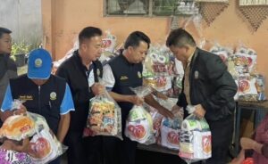 จากนั้น ได้ลงพื้นที่ไปมอบถุงยังชีพให้กับผู้ประสบภัยน้ำท่วม บริเวณชุมชนบ้านบ่อทรัพย์ ตำบลโพธิ์เสด็จ อำเภอเมืองนครศรีธรรมราช