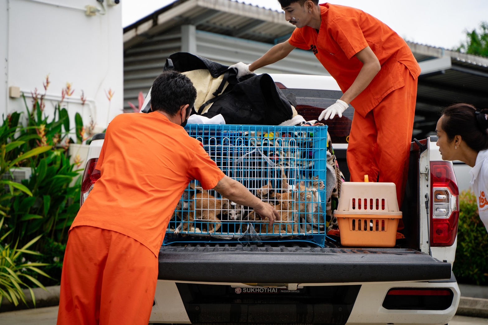 จากนั้นได้มีพลเมืองดีแจ้งเหตุมาที่มูลนิธิฯ สัตวแพทย์ได้ให้การช่วยเหลือลูกแมวเป็นกรณีฉุกเฉินทันทีเนื่องจากร่างกายอ่อนเพลียและขาดน้ำอย่างรุนแรงจากการเดินทางระยะไกลและตากฝน ประกอบกับการกักขังรวมกันจำนวนมากทำให้เกิดการแพร่กระจายของเชื้อโรคไปสู่ลูกแมวด้วยกันเอง จนทำให้มีลูกแมวเสียชีวิต 12 ตัว ระหว่างการรักษา