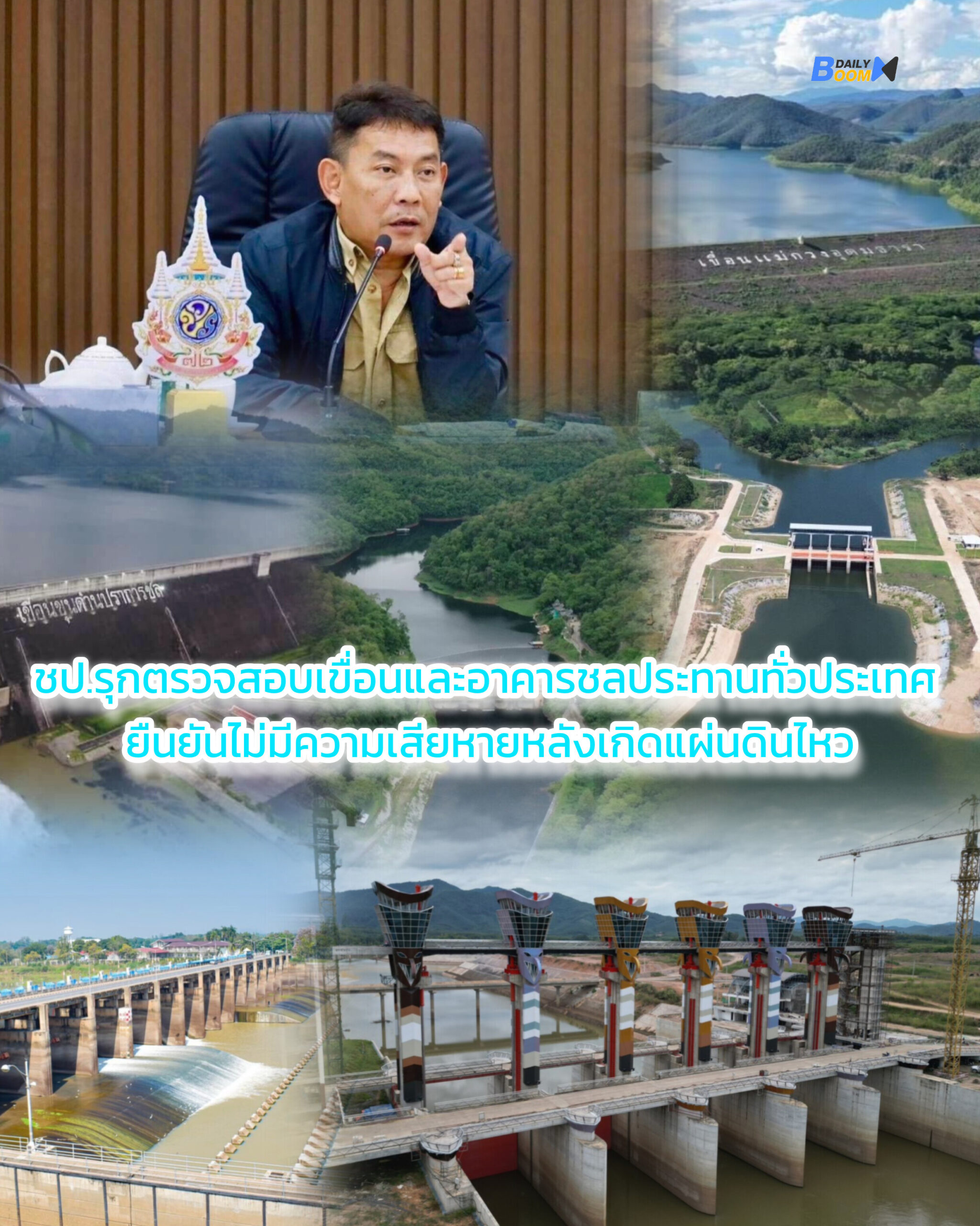 นายสุริยพล นุชอนงค์ อธิบดีกรมชลประทาน เปิดเผยว่า กรมชลประทาน ได้ดำเนินการตามมาตรการเชิงรุก เข้าไปตรวจสอบความมั่นคงของเขื่อนขนาดใหญ่ ขนาดกลาง และขนาดเล็ก ของกรมชลประทาน ตามมาตรการด้านความปลอดภัยเขื่อน รวมถึงอาคารชลประทานต่างๆ และอาคารที่อยู่ระหว่างการก่อสร้างที่อยู่ในความรับผิดชอบทั่วประเทศ หลังเกิดเหตุแผ่นดินไหวเมื่อวันที่ 28 มีนาคม 2568 ที่ผ่านมา เพื่อสร้างความมั่นใจให้กับพี่น้องประชาชน ซึ่งหลังจากการตรวจสอบยังไม่พบความผิดปกติ โครงสร้างของเขื่อนและอาคารต่างๆ ยังคงมีความมั่นคง แข็งแรง และสามารถใช้งานได้ตามปกติ