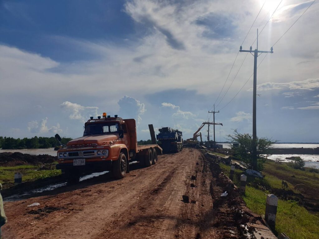 สถานการณ์น้ำในอ่างเก็บน้ำลำเชียงไกร(ตอนล่าง) หลังได้รับผลกระทบจากพายุ “เตี้ยนหมู่” ทำให้มีปริมาณน้ำเกินความจุและมีน้ำไหลข้ามทำนบดินชั่วคราว บริเวณบ่อก่อสร้างงานปรับปรุงทางระบายน้ำล้นแบบ Service Spillway จนเกิดการกัดเซาะบริเวณฝั่งขวาของอาคารที่ยังอยู่ระหว่างดำเนินการก่อสร้าง ทรุดตัวกว้างประมาณ 15 เมตร นั้น