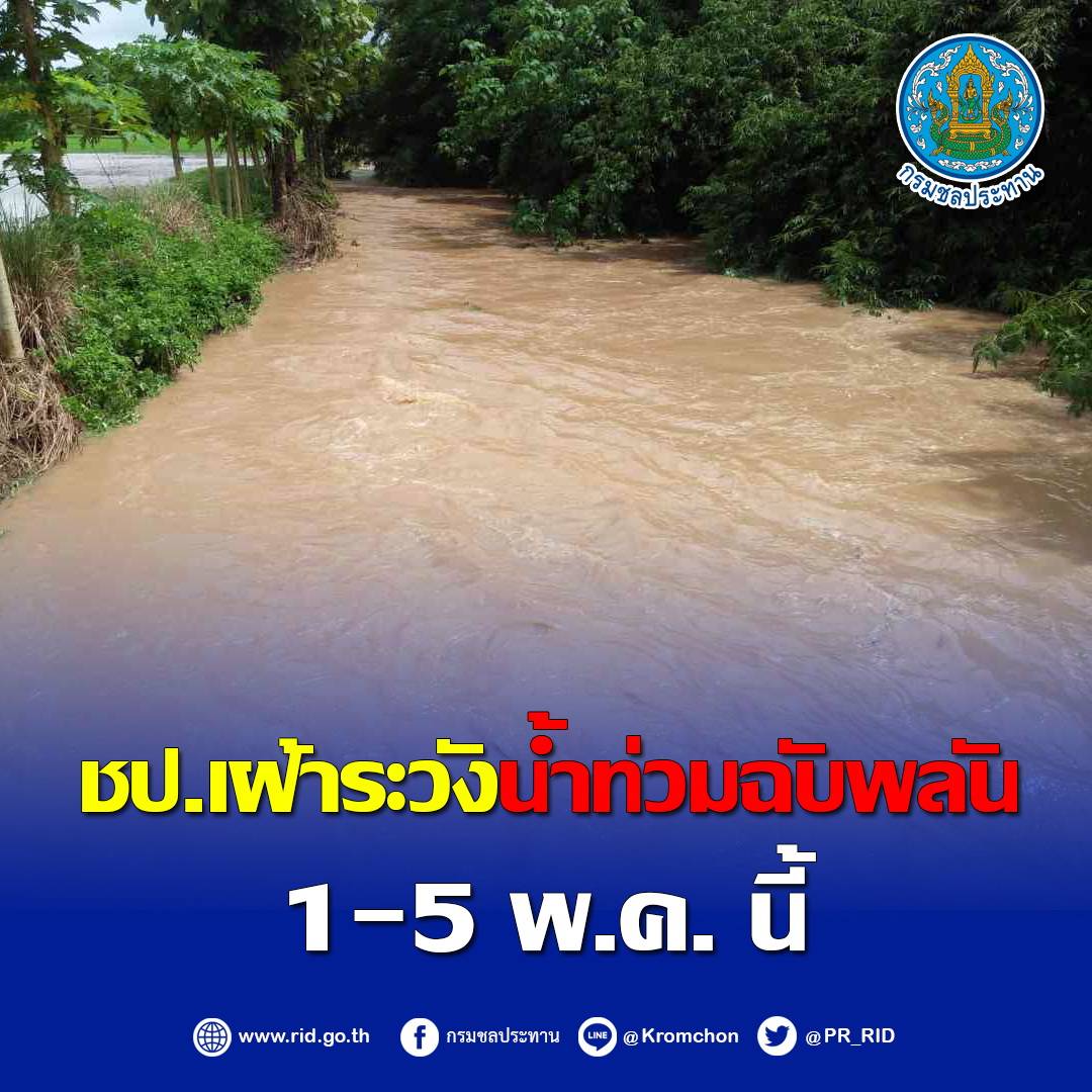 กรมชลประทาน เฝ้าระวังพื้นที่เสี่ยงน้ำหลาก และน้ำท่วมฉับพลัน ช่วงวันที่ 1 – 5 พฤษภาคม 2565 อย่างใกล้ชิด หลังกรมอุตุฯ เตือนมีฝนเพิ่มขึ้นและมีฝนตกหนักบางพื้นที่