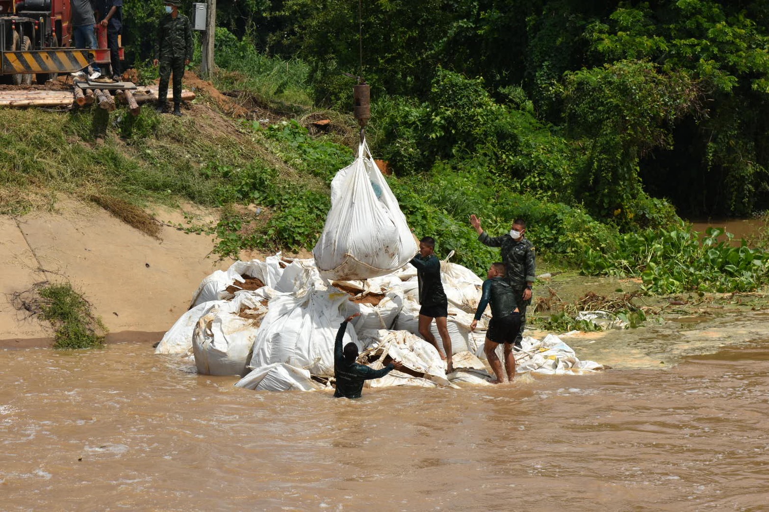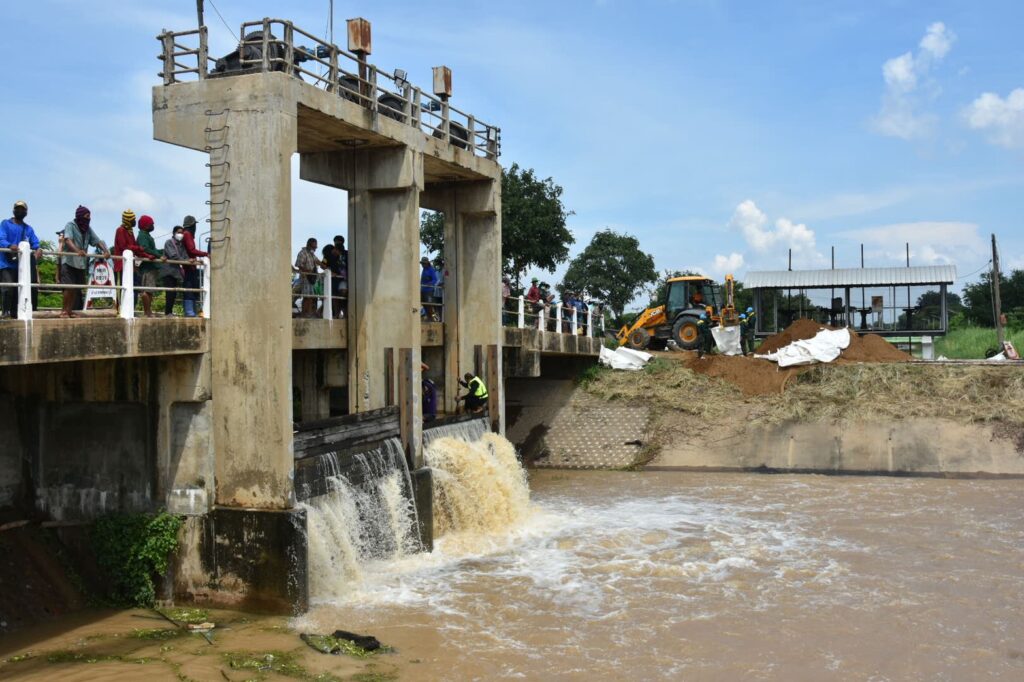 กรมชลประทาน จึงเร่งดำเนินการแก้ไขปัญหา โดยในเบื้องต้นจะวางบิ๊กแบ๊คเสริมด้านท้ายประตูระบายน้ำฯ เพื่อเสริมความแข็งแรงของประตูระบายน้ำเก้าชั่งที่ก่อสร้างมานานกว่า 40 ปีแล้ว และเสริมกระสอบทรายเหนือสันบานประตูระบายน้ำ เพื่อลดปริมาณน้ำไหลเข้า และลดผลกระทบต่อพี่น้องประชาชนกับพื้นที่การเกษตรให้มากที่สุด คาดว่าจะแล้วเสร็จภายในวันพรุ่งนี้(1 ต.ค. 54)