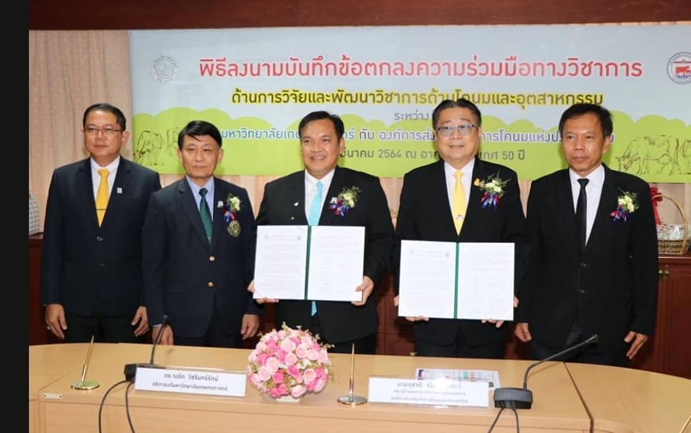 นายสุชาติ จริยาเลิศศักดิ์ รองผู้อำนวยการ ทำการแทนผู้อำนวยการองค์การส่งเสริมกิจการโคนมแห่งประเทศไทย (อ.ส.ค.) กล่าวว่า เพื่อเร่งขับเคลื่อนอุตสาหกรรมโคนมและนมโคไทยให้มีความมั่นคงและยั่งยืน สามารถแข่งขันได้ในระดับสากล เมื่อเร็ว ๆ นี้ องค์การส่งเสริมกิจการโคนมแห่งประเทศไทย (อ.ส.ค.) และมหาวิทยาลัยเกษตรศาสตร์ ได้ลงนามความร่วมมือทางวิชาการด้านโคนมและอุตสาหกรรม โดยมีแผนดำเนินการเป็นระยะเวลา 5 ปี (ระหว่างปี พ.ศ. 2564–2569) โดยความร่วมมือดังกล่าวมุ่งเน้นการผลิตและพัฒนาบุคลากร องค์ความรู้ และเทคโนโลยี โดยตั้งเป้าประเทศไทยสู่ผู้นำในการผลิตน้ำนมคุณภาพสูง หรือ นมพรีเมี่ยม ในภูมิภาคอาเซียนและสากล ทั้งนี้ มหาวิทยาลัยเกษตรศาสตร์และ อ.ส.ค. ได้มีความร่วมมือทางวิชาการด้านโคนมและอุตสาหกรรมมาอย่างต่อเนื่องกว่า 15 ปี ตั้งแต่ปี พ.ศ. 2549–2564 สร้างผลงานโดดเด่นหลายเรื่อง โดยระยะเริ่มต้น ในปี พ.ศ. 2549–2554 ความร่วมมือมุ่งเน้นไปที่การพัฒนาศักยภาพทางพันธุกรรมและความสามารถในการให้ผลผลิตของโคนมไทย ระยะที่สอง ปี พ.ศ. 2554–2559 เน้นเรื่องการพัฒนาระบบการประเมินความสามารถทางพันธุกรรมจีโนมของโคนม การพัฒนาการจัดเก็บและใช้ประโยชน์จากข้อมูล ทำให้ประเทศไทยเป็นประเทศแรกในภูมิภาคอาเซียนที่พัฒนาและนำเทคโนโลยีจีโนมมาใช้ในเชิงปฏิบัติเพื่อการพัฒนาโคนมของเกษตรกร ระยะที่สาม ปี พ.ศ. 2559–2564 ขยายขอบเขตการดำเนินงานครอบคลุมวิชาการทุกสาขาด้านโคนมและอุตสาหกรรม โดยขยายตลาดน้ำนมและน้ำเชื้อพ่อพันธุ์โคนมที่ผลิตโดยคนไทยให้ไปสู่การยอมรับและใช้ประโยชน์ในระดับสากล รวมทั้งให้ความช่วยเหลือในการพัฒนาบุคลากรและแนะนำเชิงเทคนิคในการผลิตโคนมเชิงการค้า ให้กับราชอาณาจักรภูฏานและสาธารณรัฐแห่งสหภาพเมียนมา